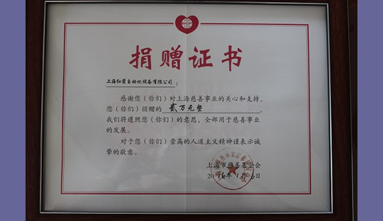 2016年,上海紅箭自動化設備有限公司為上海市慈善基金會捐款 2016